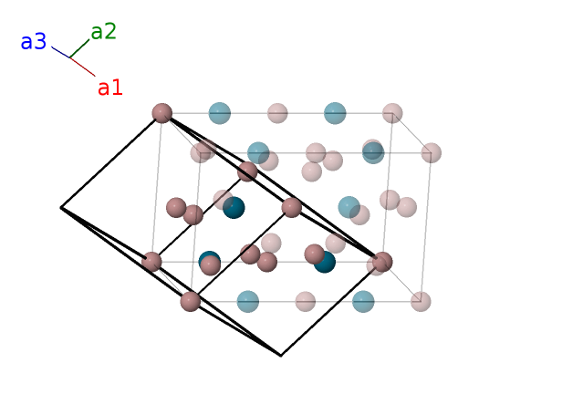| $\mathbf{B_{2}}$ | = | $\frac{3}{4} \, \mathbf{a}_{1}+\frac{3}{4} \, \mathbf{a}_{2}$ | = | $\frac{3}{4}c \,\mathbf{\hat{z}}$ | (4a) | Pd I |