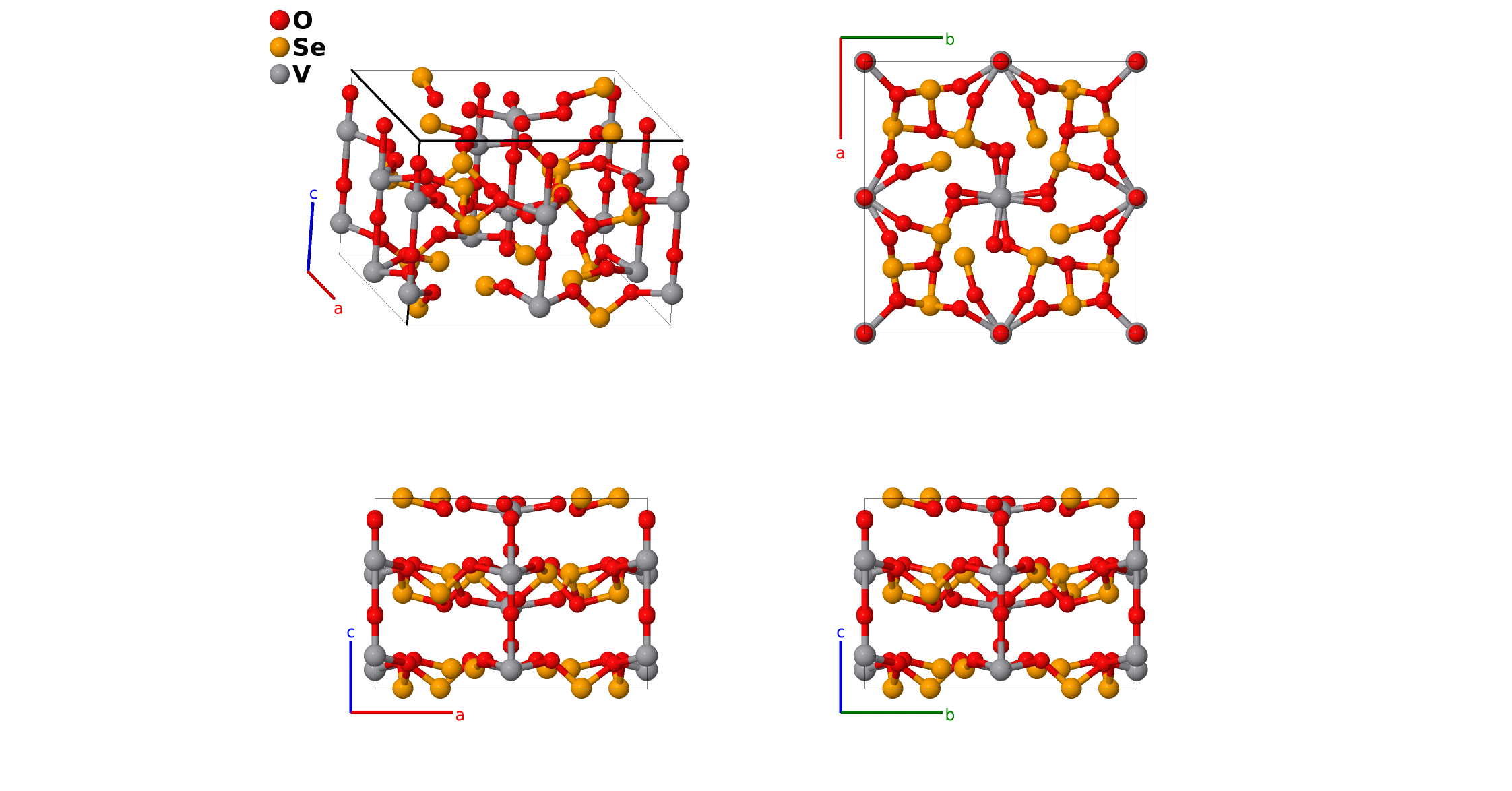 | $\mathbf{B_{32}}$ | = | $y_{8} \, \mathbf{a}_{1}+x_{8} \, \mathbf{a}_{2}+\left(z_{8} + \frac{1}{2}\right) \, \mathbf{a}_{3}$ | = | $a y_{8} \,\mathbf{\hat{x}}+a x_{8} \,\mathbf{\hat{y}}+c \left(z_{8} + \frac{1}{2}\right) \,\mathbf{\hat{z}}$ | (8d) | O V |