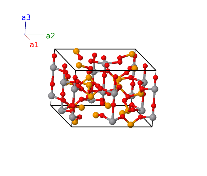 | $\mathbf{B_{29}}$ | = | $x_{8} \, \mathbf{a}_{1}- y_{8} \, \mathbf{a}_{2}+\left(z_{8} + \frac{1}{2}\right) \, \mathbf{a}_{3}$ | = | $a x_{8} \,\mathbf{\hat{x}}- a y_{8} \,\mathbf{\hat{y}}+c \left(z_{8} + \frac{1}{2}\right) \,\mathbf{\hat{z}}$ | (8d) | O V |