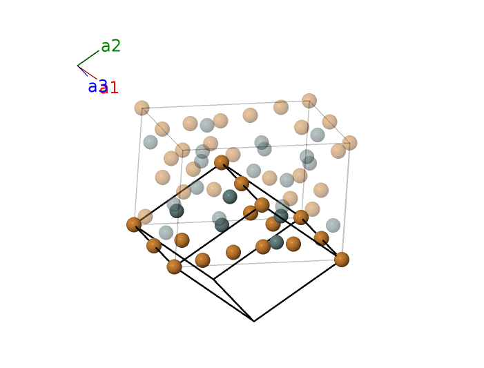 | $\mathbf{B_{2}}$ | = | $\frac{1}{2} \, \mathbf{a}_{3}$ | = | $\frac{1}{2}c \cos{\beta} \,\mathbf{\hat{x}}+\frac{1}{2}c \sin{\beta} \,\mathbf{\hat{z}}$ | (4a) | Cu I |