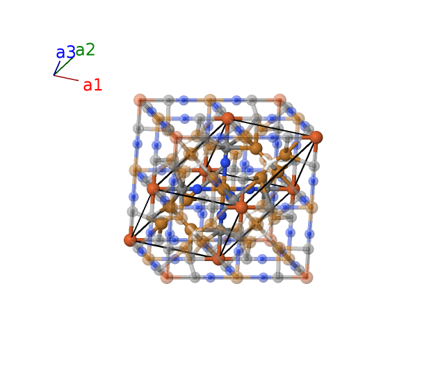 | $\mathbf{B_{24}}$ | = | $3 x_{6} \, \mathbf{a}_{1}- x_{6} \, \mathbf{a}_{2}- x_{6} \, \mathbf{a}_{3}$ | = | $- a x_{6} \,\mathbf{\hat{x}}+a x_{6} \,\mathbf{\hat{y}}+a x_{6} \,\mathbf{\hat{z}}$ | (32f) | Cu II |