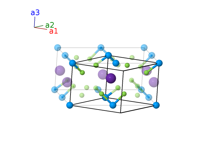 | $\mathbf{B_{2}}$ | = | $\frac{1}{2} \, \mathbf{a}_{1}+\frac{1}{2} \, \mathbf{a}_{2}$ | = | $\frac{1}{2}a \,\mathbf{\hat{x}}$ | (4c) | Pa I |