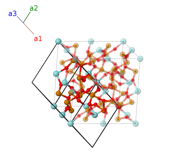 | $\mathbf{B_{27}}$ | = | $\left(y_{4} - z_{4}\right) \, \mathbf{a}_{1}- \left(x_{4} + z_{4} - \frac{1}{2}\right) \, \mathbf{a}_{2}+\left(- x_{4} + y_{4} + \frac{1}{2}\right) \, \mathbf{a}_{3}$ | = | $- a \left(x_{4} - \frac{1}{2}\right) \,\mathbf{\hat{x}}+a y_{4} \,\mathbf{\hat{y}}- a z_{4} \,\mathbf{\hat{z}}$ | (48e) | O II |