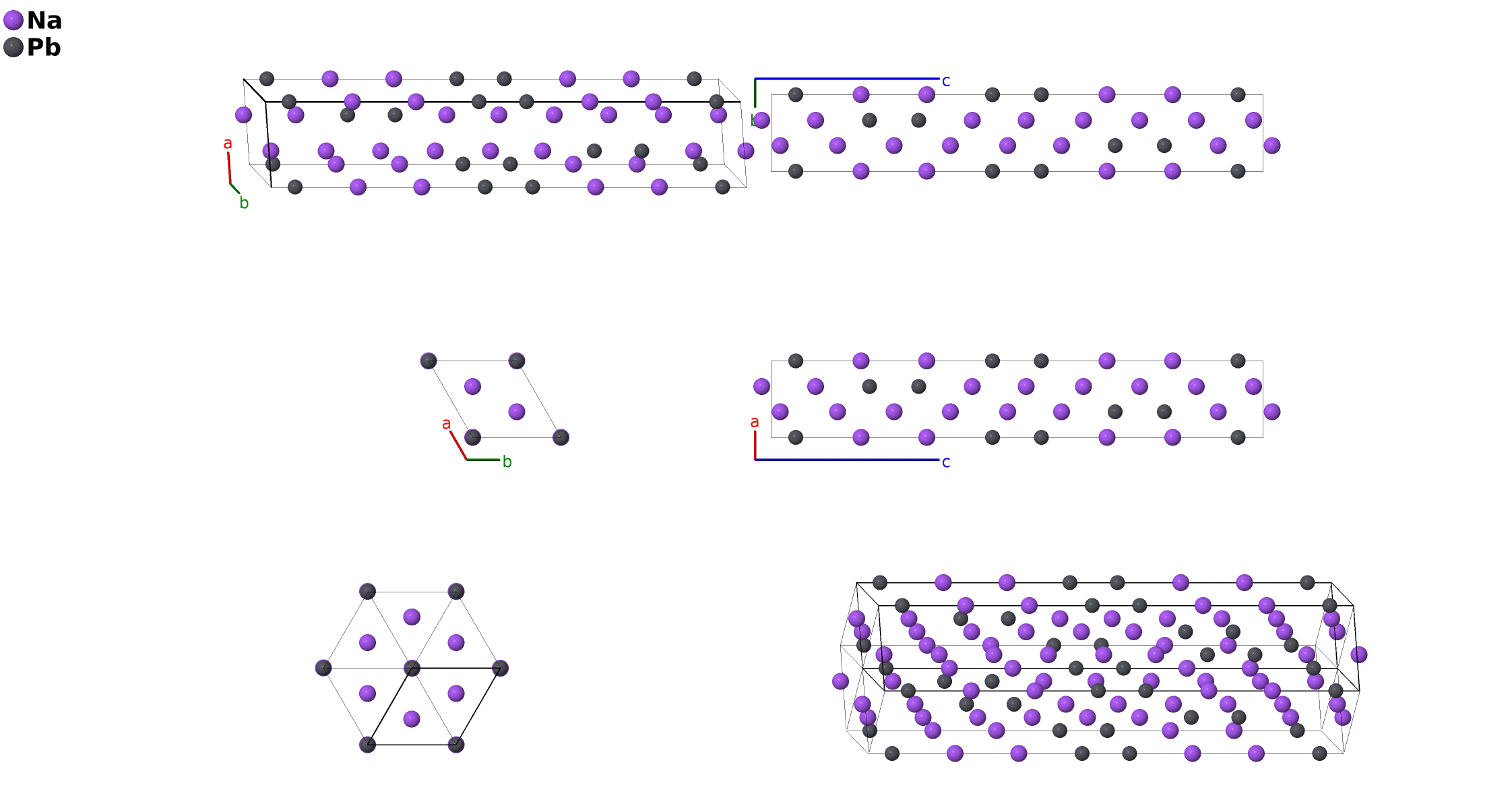 | $\mathbf{B_{15}}$ | = | $\frac{1}{3} \, \mathbf{a}_{1}+\frac{2}{3} \, \mathbf{a}_{2}+z_{5} \, \mathbf{a}_{3}$ | = | $\frac{1}{2}a \,\mathbf{\hat{x}}+\frac{\sqrt{3}}{6}a \,\mathbf{\hat{y}}+c z_{5} \,\mathbf{\hat{z}}$ | (4f) | Na IV |