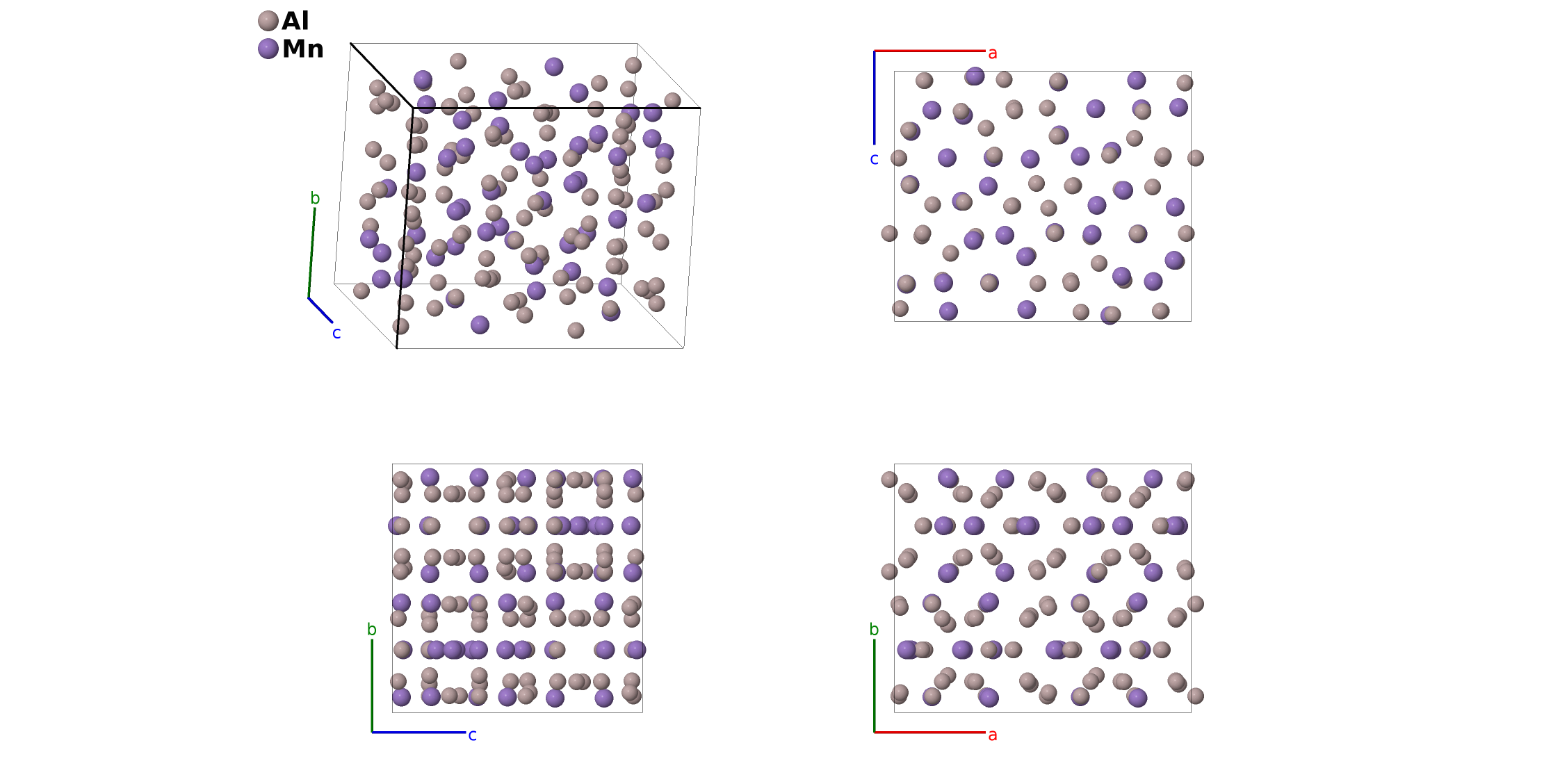 | $\mathbf{B_{45}}$ | = | $x_{12} \, \mathbf{a}_{1}+y_{12} \, \mathbf{a}_{2}+z_{12} \, \mathbf{a}_{3}$ | = | $a x_{12} \,\mathbf{\hat{x}}+b y_{12} \,\mathbf{\hat{y}}+c z_{12} \,\mathbf{\hat{z}}$ | (8d) | Al VI |
