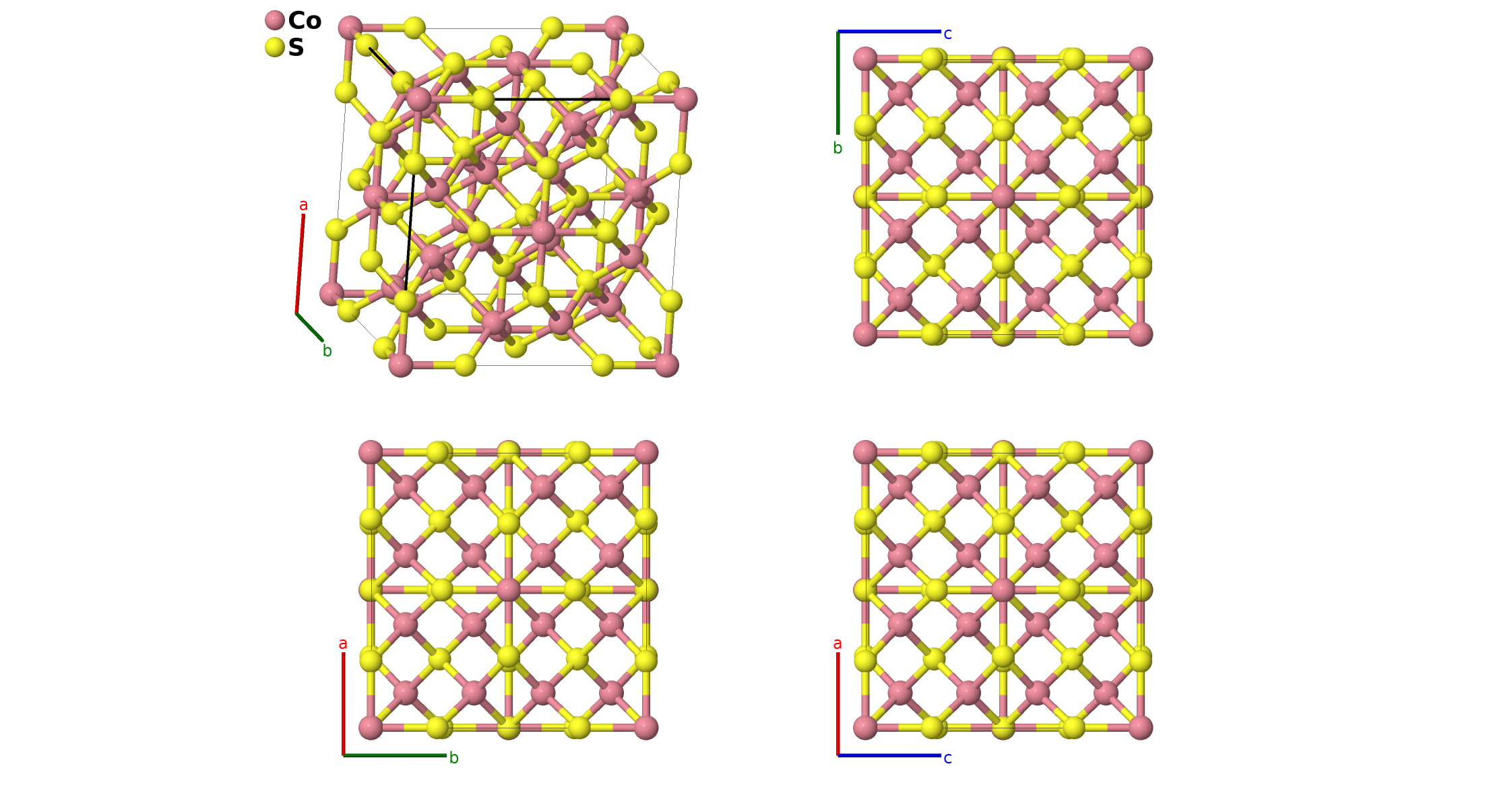 (Fe, Ni)$_{9}$S$_{8}$ (pentlandite), Co$_{9}$Se$_{8}$, Co$_{8}$FeS$_{8}$, Co$_{8}$NiS$_{8}$, Co$_{8}$PdS$_{8}$, Co$_{8}$RhS$_{8}$, Co$_{8}$RuS$_{8}$, Fe$_{4}$Ni$_{4}$PdS$_{8}$, Fe$_{4}$Ni$_{4}$RhS$_{8}$, Fe$_{4}$Ni$_{4}$RuS$_{8}$