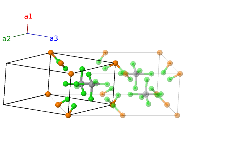 | $\mathbf{B_{12}}$ | = | $- x_{6} \, \mathbf{a}_{1}- \left(y_{6} + z_{6}\right) \, \mathbf{a}_{2}- \left(y_{6} - z_{6}\right) \, \mathbf{a}_{3}$ | = | $- a x_{6} \,\mathbf{\hat{x}}- b y_{6} \,\mathbf{\hat{y}}+c z_{6} \,\mathbf{\hat{z}}$ | (8d) | Cl IV |