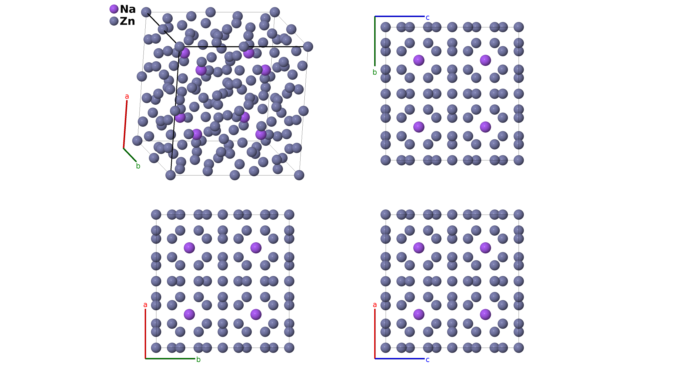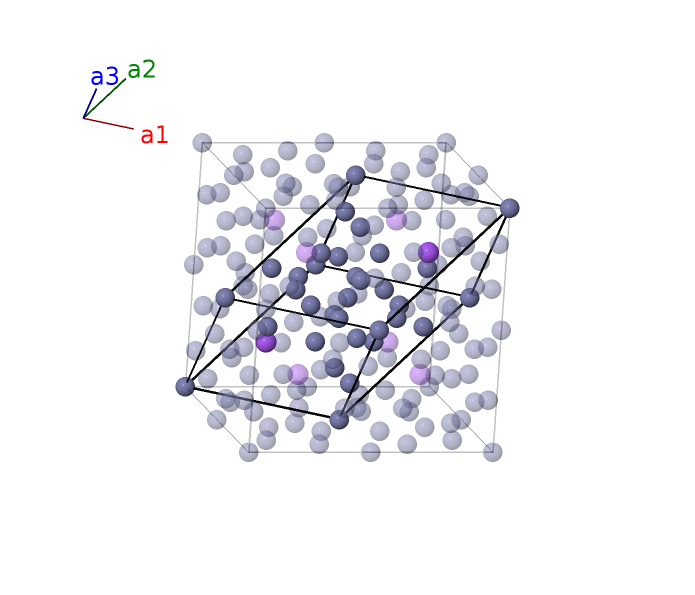| $\mathbf{B_{2}}$ | = | $\frac{3}{4} \, \mathbf{a}_{1}+\frac{3}{4} \, \mathbf{a}_{2}+\frac{3}{4} \, \mathbf{a}_{3}$ | = | $\frac{3}{4}a \,\mathbf{\hat{x}}+\frac{3}{4}a \,\mathbf{\hat{y}}+\frac{3}{4}a \,\mathbf{\hat{z}}$ | (8a) | Na I |