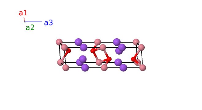 | $\mathbf{B_{9}}$ | = | $\frac{2}{3} \, \mathbf{a}_{1}+\frac{1}{3} \, \mathbf{a}_{2}- z_{4} \, \mathbf{a}_{3}$ | = | $\frac{1}{2}a \,\mathbf{\hat{x}}- \frac{\sqrt{3}}{6}a \,\mathbf{\hat{y}}- c z_{4} \,\mathbf{\hat{z}}$ | (4f) | O I |