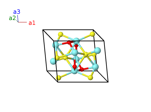 | $\mathbf{B_{8}}$ | = | $x_{2} \, \mathbf{a}_{1}- \left(y_{2} - \frac{1}{2}\right) \, \mathbf{a}_{2}+\left(z_{2} + \frac{1}{2}\right) \, \mathbf{a}_{3}$ | = | $\left(a x_{2} + c \left(z_{2} + \frac{1}{2}\right) \cos{\beta}\right) \,\mathbf{\hat{x}}- b \left(y_{2} - \frac{1}{2}\right) \,\mathbf{\hat{y}}+c \left(z_{2} + \frac{1}{2}\right) \sin{\beta} \,\mathbf{\hat{z}}$ | (4e) | S I |