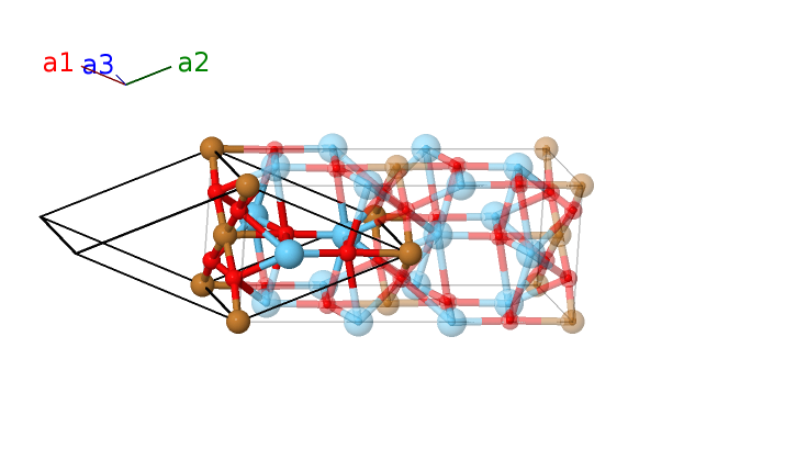 | $\mathbf{B_{12}}$ | = | $\left(y_{4} + \frac{1}{2}\right) \, \mathbf{a}_{1}- \left(y_{4} - \frac{1}{2}\right) \, \mathbf{a}_{2}+\left(z_{4} + \frac{1}{2}\right) \, \mathbf{a}_{3}$ | = | $\frac{1}{2}a \,\mathbf{\hat{x}}- b y_{4} \,\mathbf{\hat{y}}+c \left(z_{4} + \frac{1}{2}\right) \,\mathbf{\hat{z}}$ | (8f) | O II |