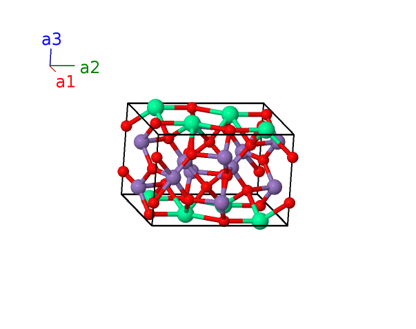 | $\mathbf{B_{23}}$ | = | $- \left(x_{6} - \frac{1}{2}\right) \, \mathbf{a}_{1}+\left(y_{6} + \frac{1}{2}\right) \, \mathbf{a}_{2}+\frac{1}{2} \, \mathbf{a}_{3}$ | = | $- a \left(x_{6} - \frac{1}{2}\right) \,\mathbf{\hat{x}}+b \left(y_{6} + \frac{1}{2}\right) \,\mathbf{\hat{y}}+\frac{1}{2}c \,\mathbf{\hat{z}}$ | (4h) | O III |