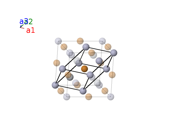 | $\mathbf{B_{2}}$ | = | $\frac{1}{2} \, \mathbf{a}_{1}+\frac{1}{2} \, \mathbf{a}_{2}+\frac{1}{2} \, \mathbf{a}_{3}$ | = | $\frac{1}{2}a \,\mathbf{\hat{x}}+\frac{1}{2}a \,\mathbf{\hat{y}}+\frac{1}{2}a \,\mathbf{\hat{z}}$ | (4b) | Hg I |
