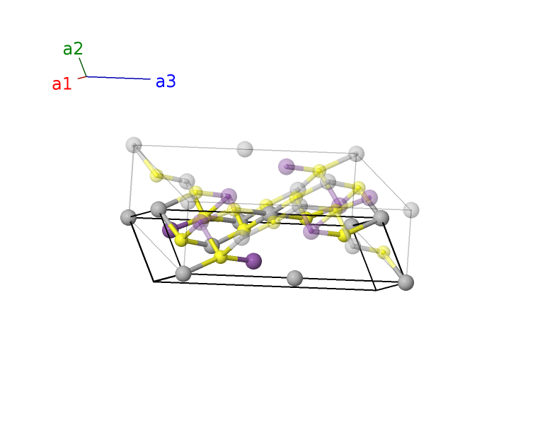 | $\mathbf{B_{4}}$ | = | $y_{2} \, \mathbf{a}_{1}- y_{2} \, \mathbf{a}_{2}+\frac{3}{4} \, \mathbf{a}_{3}$ | = | $\frac{3}{4}c \cos{\beta} \,\mathbf{\hat{x}}- b y_{2} \,\mathbf{\hat{y}}+\frac{3}{4}c \sin{\beta} \,\mathbf{\hat{z}}$ | (4e) | Ag II |