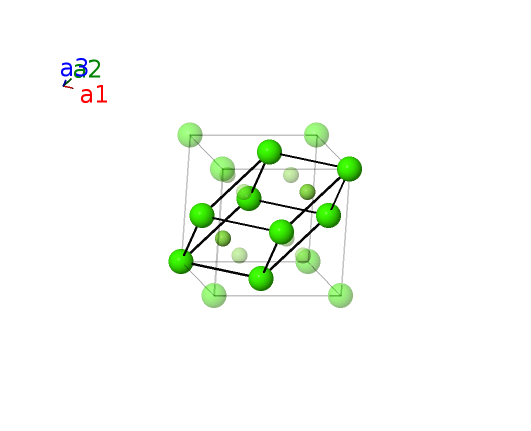 | $\mathbf{B_{2}}$ | = | $\frac{1}{4} \, \mathbf{a}_{1}+\frac{1}{4} \, \mathbf{a}_{2}+\frac{1}{4} \, \mathbf{a}_{3}$ | = | $\frac{1}{4}a \,\mathbf{\hat{x}}+\frac{1}{4}a \,\mathbf{\hat{y}}+\frac{1}{4}a \,\mathbf{\hat{z}}$ | (8c) | F I |