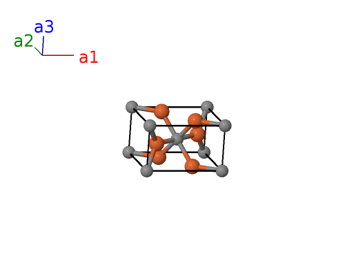 | $\mathbf{B_{2}}$ | = | $\frac{1}{2} \, \mathbf{a}_{1}+\frac{1}{2} \, \mathbf{a}_{2}+\frac{1}{2} \, \mathbf{a}_{3}$ | = | $\frac{1}{2}a \,\mathbf{\hat{x}}+\frac{1}{2}b \,\mathbf{\hat{y}}+\frac{1}{2}c \,\mathbf{\hat{z}}$ | (2a) | C I |