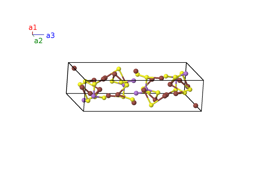 | $\mathbf{B_{32}}$ | = | $- \left(x_{4} - \frac{1}{2}\right) \, \mathbf{a}_{1}+\left(y_{4} + \frac{1}{2}\right) \, \mathbf{a}_{2}+z_{4} \, \mathbf{a}_{3}$ | = | $- a \left(x_{4} - \frac{1}{2}\right) \,\mathbf{\hat{x}}+b \left(y_{4} + \frac{1}{2}\right) \,\mathbf{\hat{y}}+c z_{4} \,\mathbf{\hat{z}}$ | (8c) | S III |