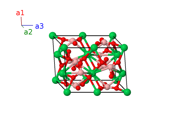 | $\mathbf{B_{23}}$ | = | $- x_{5} \, \mathbf{a}_{2}+\left(z_{5} + \frac{1}{2}\right) \, \mathbf{a}_{3}$ | = | $- \frac{1}{2}a x_{5} \,\mathbf{\hat{x}}- \frac{\sqrt{3}}{2}a x_{5} \,\mathbf{\hat{y}}+c \left(z_{5} + \frac{1}{2}\right) \,\mathbf{\hat{z}}$ | (12k) | O II |