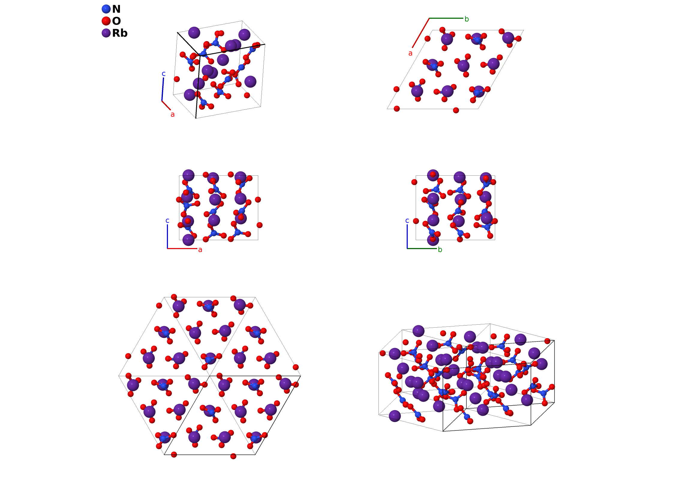 | $\mathbf{B_{41}}$ | = | $- y_{14} \, \mathbf{a}_{1}+\left(x_{14} - y_{14}\right) \, \mathbf{a}_{2}+\left(z_{14} + \frac{1}{3}\right) \, \mathbf{a}_{3}$ | = | $\frac{1}{2}a \left(x_{14} - 2 y_{14}\right) \,\mathbf{\hat{x}}+\frac{\sqrt{3}}{2}a x_{14} \,\mathbf{\hat{y}}+c \left(z_{14} + \frac{1}{3}\right) \,\mathbf{\hat{z}}$ | (3a) | Rb II |