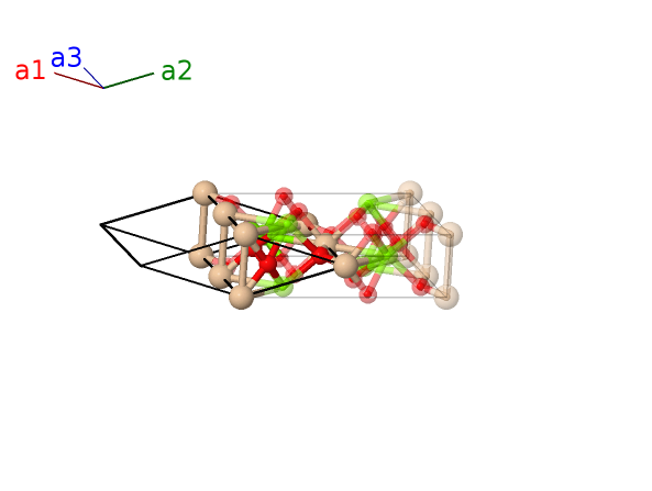 | $\mathbf{B_{9}}$ | = | $- y_{4} \, \mathbf{a}_{1}+y_{4} \, \mathbf{a}_{2}- \left(z_{4} - \frac{1}{2}\right) \, \mathbf{a}_{3}$ | = | $b y_{4} \,\mathbf{\hat{y}}- c \left(z_{4} - \frac{1}{2}\right) \,\mathbf{\hat{z}}$ | (8f) | O II |