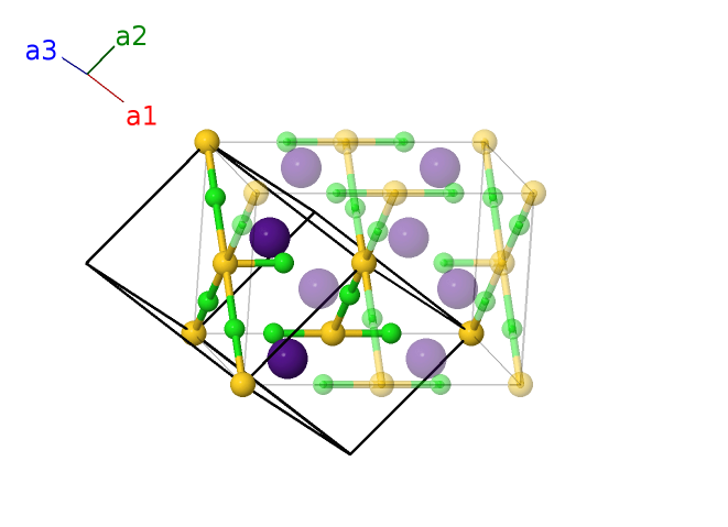 | $\mathbf{B_{8}}$ | = | $- x_{5} \, \mathbf{a}_{1}- x_{5} \, \mathbf{a}_{2}- 2 x_{5} \, \mathbf{a}_{3}$ | = | $- a x_{5} \,\mathbf{\hat{x}}- a x_{5} \,\mathbf{\hat{y}}$ | (8h) | Cl II |