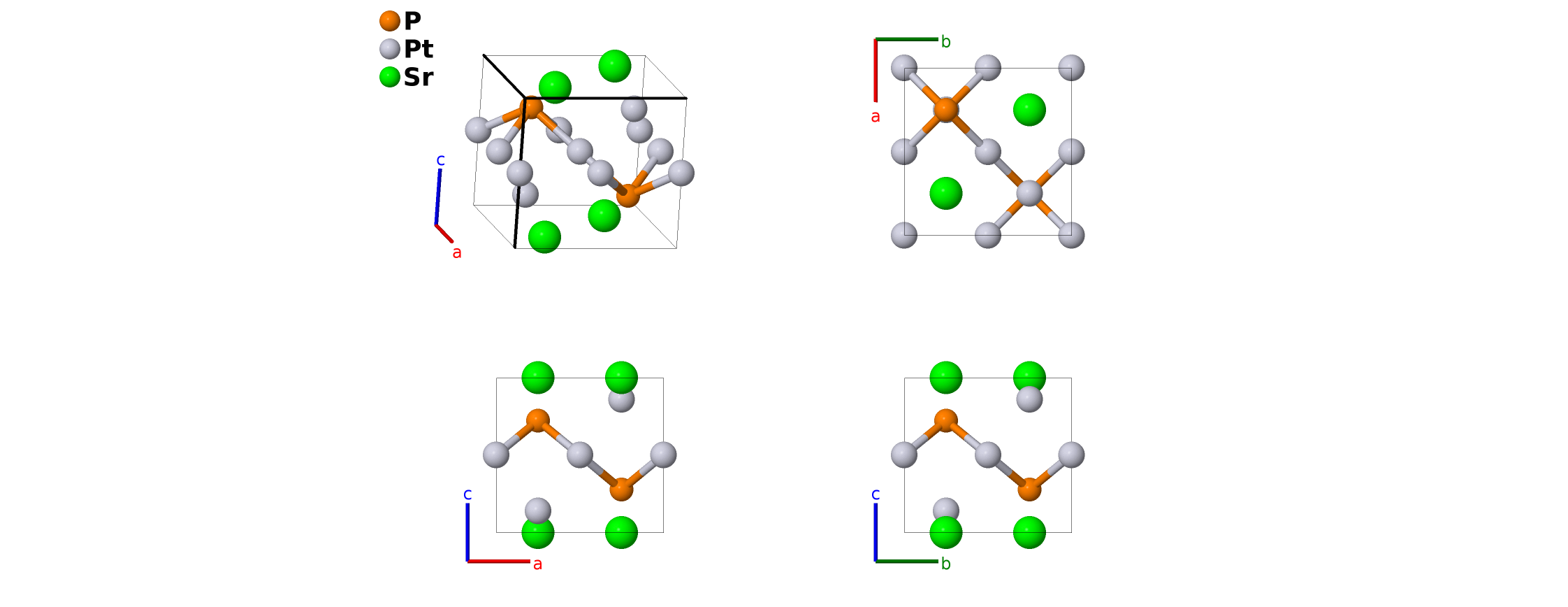 | $\mathbf{B_{1}}$ | = | $\frac{3}{4} \, \mathbf{a}_{1}+\frac{1}{4} \, \mathbf{a}_{2}$ | = | $\frac{3}{4}a \,\mathbf{\hat{x}}+\frac{1}{4}a \,\mathbf{\hat{y}}$ | (2a) | Sr I |