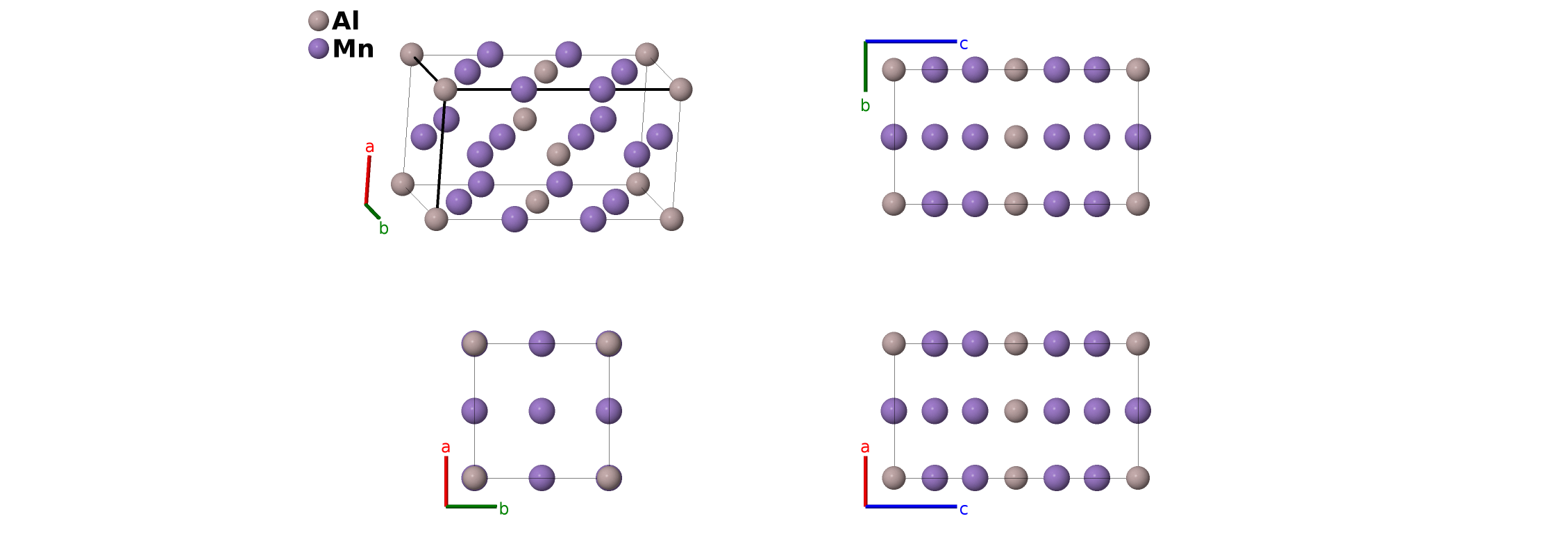 | $\mathbf{B_{2}}$ | = | $\frac{1}{2} \, \mathbf{a}_{1}+\frac{1}{2} \, \mathbf{a}_{2}$ | = | $\frac{1}{2}a \,\mathbf{\hat{x}}+\frac{1}{2}a \,\mathbf{\hat{y}}$ | (1c) | Mn I |
