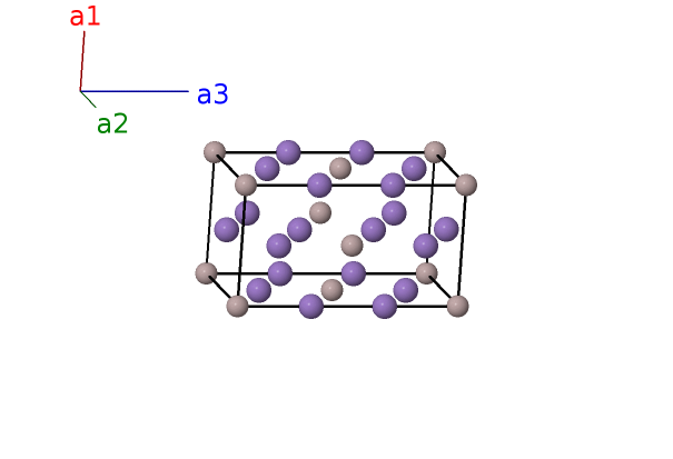 | $\mathbf{B_{3}}$ | = | $\frac{1}{2} \, \mathbf{a}_{2}+\frac{1}{2} \, \mathbf{a}_{3}$ | = | $\frac{1}{2}a \,\mathbf{\hat{y}}+\frac{1}{2}c \,\mathbf{\hat{z}}$ | (2e) | Al II |