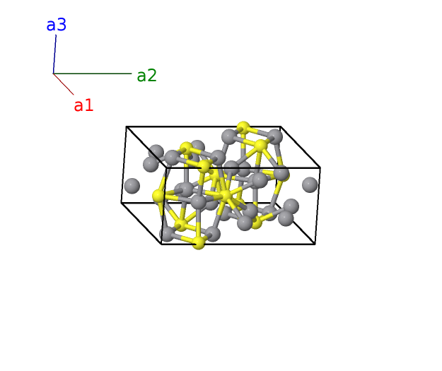 | $\mathbf{B_{27}}$ | = | $- \left(x_{4} - \frac{1}{2}\right) \, \mathbf{a}_{1}+x_{4} \, \mathbf{a}_{2}+\frac{3}{4} \, \mathbf{a}_{3}$ | = | $- a \left(x_{4} - \frac{1}{2}\right) \,\mathbf{\hat{x}}+a x_{4} \,\mathbf{\hat{y}}+\frac{3}{4}c \,\mathbf{\hat{z}}$ | (8j) | V III |