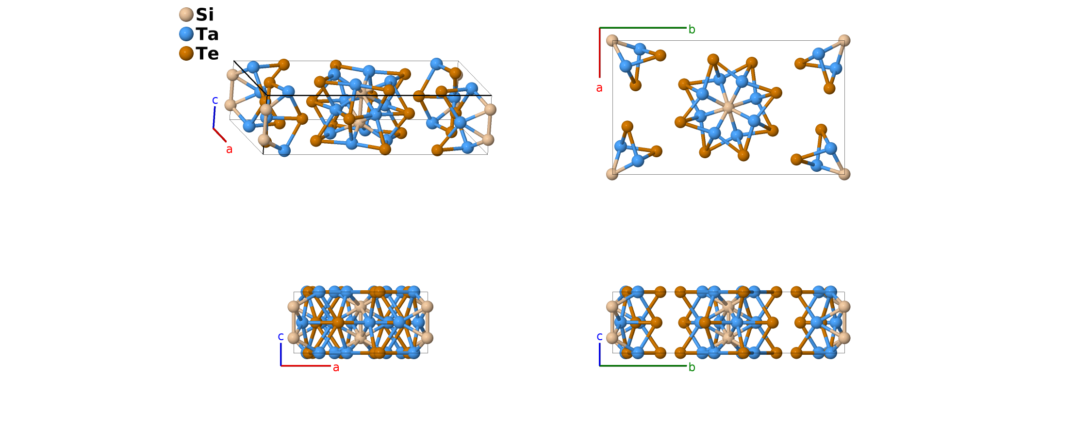 • M. E. Badding and F. J. DiSalvo, Synthesis and structure of tantalum silicide telluride, Ta$_{4}$SiTe$_{4}$, a new low-dimensional material, Inorg. Chem. 29, 3952–3954 (1990), doi:10.1021/ic00345a009.