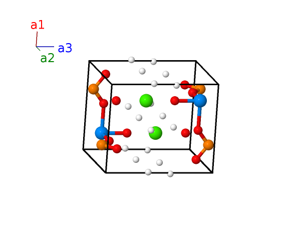 | $\mathbf{B_{8}}$ | = | $\frac{3}{4} \, \mathbf{a}_{1}+\frac{3}{4} \, \mathbf{a}_{2}- z_{4} \, \mathbf{a}_{3}$ | = | $\frac{3}{4}a \,\mathbf{\hat{x}}+\frac{3}{4}a \,\mathbf{\hat{y}}- c z_{4} \,\mathbf{\hat{z}}$ | (2c) | O II |