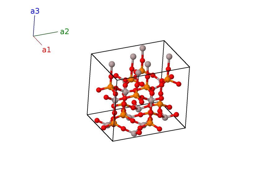 | $\mathbf{B_{43}}$ | = | $- y_{4} \, \mathbf{a}_{1}- x_{4} \, \mathbf{a}_{2}+\left(z_{4} + \frac{1}{2}\right) \, \mathbf{a}_{3}$ | = | $- \frac{1}{2}a \left(x_{4} + y_{4}\right) \,\mathbf{\hat{x}}- \frac{\sqrt{3}}{2}a \left(x_{4} - y_{4}\right) \,\mathbf{\hat{y}}+c \left(z_{4} + \frac{1}{2}\right) \,\mathbf{\hat{z}}$ | (12d) | O III |