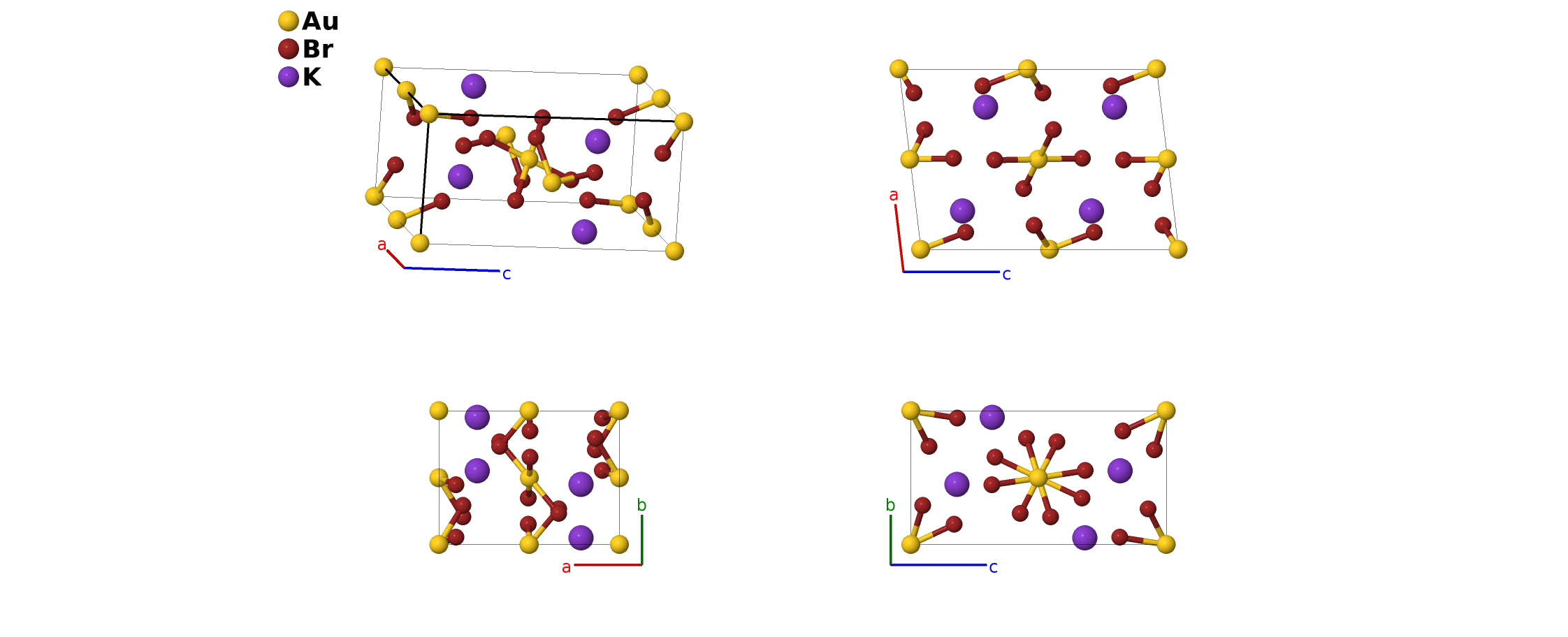 | $\mathbf{B_{4}}$ | = | $\frac{1}{2} \, \mathbf{a}_{1}+\frac{1}{2} \, \mathbf{a}_{2}+\frac{1}{2} \, \mathbf{a}_{3}$ | = | $\frac{1}{2}\left(a + c \cos{\beta}\right) \,\mathbf{\hat{x}}+\frac{1}{2}b \,\mathbf{\hat{y}}+\frac{1}{2}c \sin{\beta} \,\mathbf{\hat{z}}$ | (2b) | Au II |