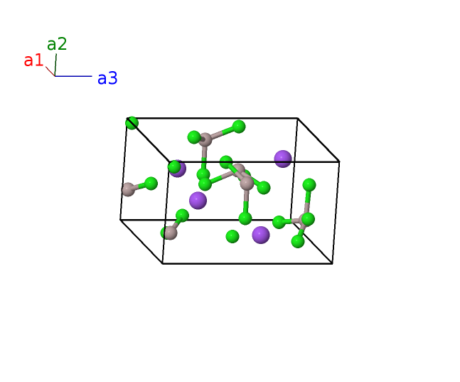 | $\mathbf{B_{8}}$ | = | $\left(x_{2} + \frac{1}{2}\right) \, \mathbf{a}_{1}- \left(y_{2} - \frac{1}{2}\right) \, \mathbf{a}_{2}- z_{2} \, \mathbf{a}_{3}$ | = | $a \left(x_{2} + \frac{1}{2}\right) \,\mathbf{\hat{x}}- b \left(y_{2} - \frac{1}{2}\right) \,\mathbf{\hat{y}}- c z_{2} \,\mathbf{\hat{z}}$ | (4a) | Cl I |