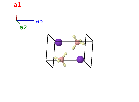 | $\mathbf{B_{4}}$ | = | $\frac{1}{4} \, \mathbf{a}_{1}+\frac{3}{4} \, \mathbf{a}_{2}+\frac{3}{4} \, \mathbf{a}_{3}$ | = | $\frac{1}{4}a \,\mathbf{\hat{x}}+\frac{3}{4}a \,\mathbf{\hat{y}}+\frac{3}{4}c \,\mathbf{\hat{z}}$ | (2b) | K I |