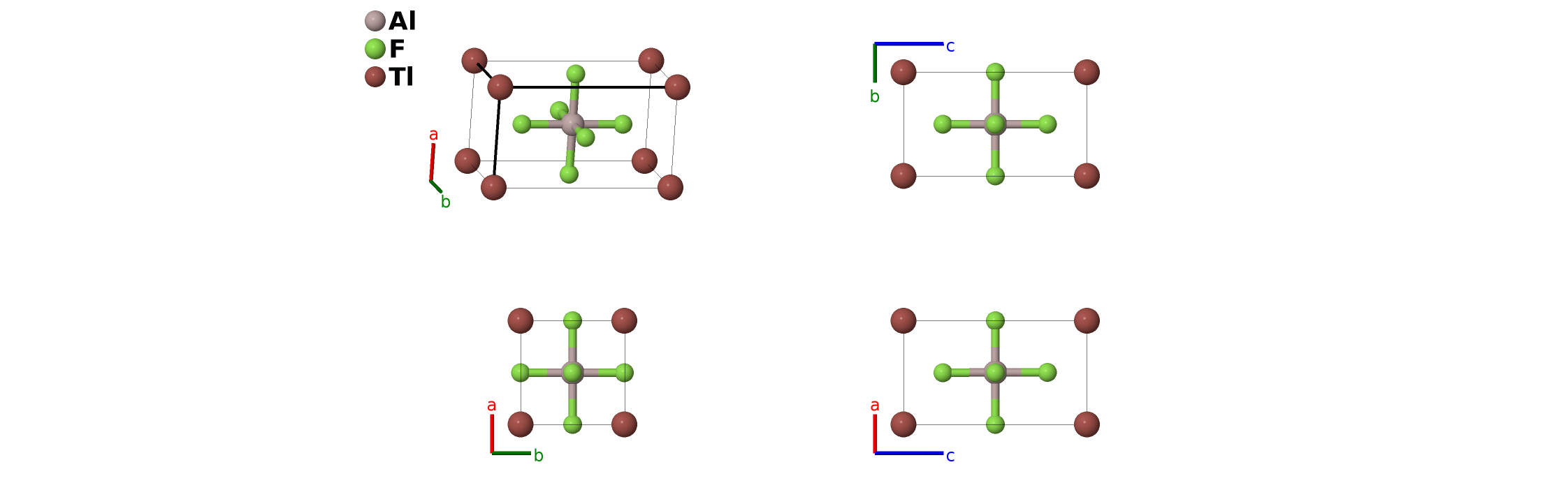 | $\mathbf{B_{2}}$ | = | $\frac{1}{2} \, \mathbf{a}_{1}+\frac{1}{2} \, \mathbf{a}_{2}$ | = | $\frac{1}{2}a \,\mathbf{\hat{x}}+\frac{1}{2}a \,\mathbf{\hat{y}}$ | (1c) | Tl I |