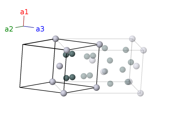| $\mathbf{B_{8}}$ | = | $- x_{3} \, \mathbf{a}_{1}- \left(y_{3} + z_{3}\right) \, \mathbf{a}_{2}- \left(y_{3} - z_{3}\right) \, \mathbf{a}_{3}$ | = | $- a x_{3} \,\mathbf{\hat{x}}- b y_{3} \,\mathbf{\hat{y}}+c z_{3} \,\mathbf{\hat{z}}$ | (8b) | Sn II |