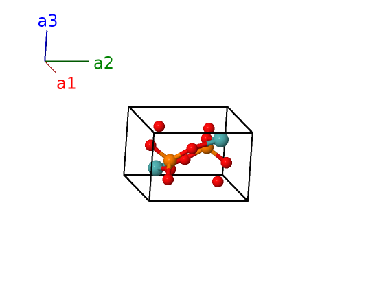 | $\mathbf{B_{12}}$ | = | $\left(x_{4} + \frac{1}{2}\right) \, \mathbf{a}_{1}+\left(y_{4} + \frac{1}{2}\right) \, \mathbf{a}_{2}- z_{4} \, \mathbf{a}_{3}$ | = | $a \left(x_{4} + \frac{1}{2}\right) \,\mathbf{\hat{x}}+a \left(y_{4} + \frac{1}{2}\right) \,\mathbf{\hat{y}}- c z_{4} \,\mathbf{\hat{z}}$ | (8g) | O II |