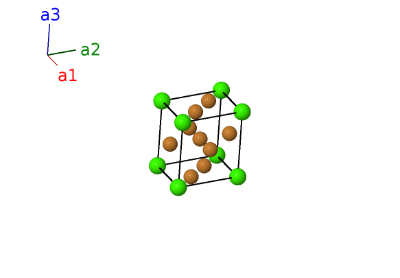 | $\mathbf{B_{6}}$ | = | $\frac{1}{2} \, \mathbf{a}_{1}+\frac{1}{2} \, \mathbf{a}_{2}+\frac{1}{2} \, \mathbf{a}_{3}$ | = | $\frac{1}{2}a \,\mathbf{\hat{x}}+\frac{1}{2}c \,\mathbf{\hat{z}}$ | (3g) | Cu II |
