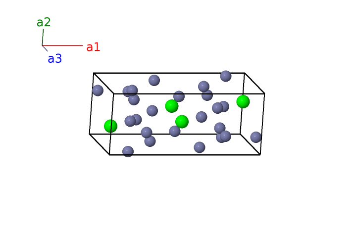 | $\mathbf{B_{24}}$ | = | $- \left(x_{5} - \frac{1}{2}\right) \, \mathbf{a}_{1}+\left(y_{5} + \frac{1}{2}\right) \, \mathbf{a}_{2}+\left(z_{5} + \frac{1}{2}\right) \, \mathbf{a}_{3}$ | = | $- a \left(x_{5} - \frac{1}{2}\right) \,\mathbf{\hat{x}}+b \left(y_{5} + \frac{1}{2}\right) \,\mathbf{\hat{y}}+c \left(z_{5} + \frac{1}{2}\right) \,\mathbf{\hat{z}}$ | (8d) | Zn IV |