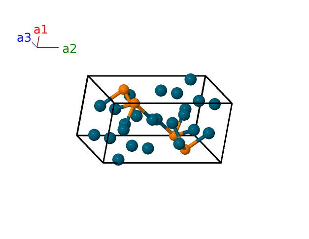 | $\mathbf{B_{24}}$ | = | $x_{6} \, \mathbf{a}_{1}- \left(y_{6} - \frac{1}{2}\right) \, \mathbf{a}_{2}+\left(z_{6} + \frac{1}{2}\right) \, \mathbf{a}_{3}$ | = | $\left(a x_{6} + c \left(z_{6} + \frac{1}{2}\right) \cos{\beta}\right) \,\mathbf{\hat{x}}- b \left(y_{6} - \frac{1}{2}\right) \,\mathbf{\hat{y}}+c \left(z_{6} + \frac{1}{2}\right) \sin{\beta} \,\mathbf{\hat{z}}$ | (4e) | Pd V |
