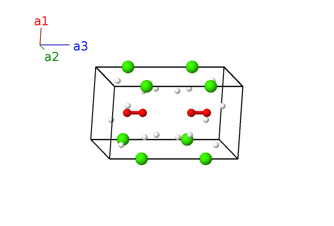 | $\mathbf{B_{4}}$ | = | $\frac{1}{2} \, \mathbf{a}_{1}+\frac{1}{2} \, \mathbf{a}_{2}- \left(z_{2} - \frac{1}{2}\right) \, \mathbf{a}_{3}$ | = | $\frac{1}{2}a \,\mathbf{\hat{x}}+\frac{1}{2}a \,\mathbf{\hat{y}}- c \left(z_{2} - \frac{1}{2}\right) \,\mathbf{\hat{z}}$ | (4h) | O I |
