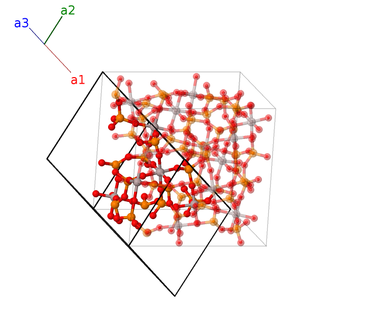 | $\mathbf{B_{55}}$ | = | $- \left(x_{3} - y_{3}\right) \, \mathbf{a}_{1}- \left(x_{3} + z_{3}\right) \, \mathbf{a}_{2}+\left(y_{3} - z_{3} + \frac{1}{2}\right) \, \mathbf{a}_{3}$ | = | $- a \left(z_{3} - \frac{1}{4}\right) \,\mathbf{\hat{x}}+a \left(y_{3} + \frac{1}{4}\right) \,\mathbf{\hat{y}}- a \left(x_{3} + \frac{1}{4}\right) \,\mathbf{\hat{z}}$ | (48e) | O II |