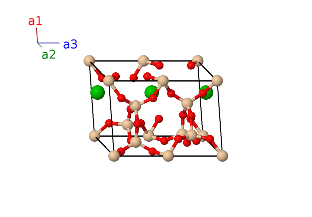 | $\mathbf{B_{23}}$ | = | $- y_{5} \, \mathbf{a}_{1}- x_{5} \, \mathbf{a}_{2}+\left(z_{5} + \frac{1}{2}\right) \, \mathbf{a}_{3}$ | = | $- \frac{1}{2}a \left(x_{5} + y_{5}\right) \,\mathbf{\hat{x}}- \frac{\sqrt{3}}{2}a \left(x_{5} - y_{5}\right) \,\mathbf{\hat{y}}+c \left(z_{5} + \frac{1}{2}\right) \,\mathbf{\hat{z}}$ | (12l) | O II |
