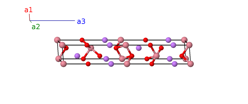 | $\mathbf{B_{13}}$ | = | $\frac{1}{3} \, \mathbf{a}_{1}+\frac{2}{3} \, \mathbf{a}_{2}+z_{7} \, \mathbf{a}_{3}$ | = | $\frac{1}{2}a \,\mathbf{\hat{x}}+\frac{\sqrt{3}}{6}a \,\mathbf{\hat{y}}+c z_{7} \,\mathbf{\hat{z}}$ | (2b) | O III |
