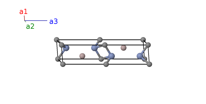 | $\mathbf{B_{3}}$ | = | $\frac{1}{3} \, \mathbf{a}_{1}+\frac{2}{3} \, \mathbf{a}_{2}+\frac{1}{4} \, \mathbf{a}_{3}$ | = | $\frac{1}{2}a \,\mathbf{\hat{x}}+\frac{\sqrt{3}}{6}a \,\mathbf{\hat{y}}+\frac{1}{4}c \,\mathbf{\hat{z}}$ | (2c) | Al I |