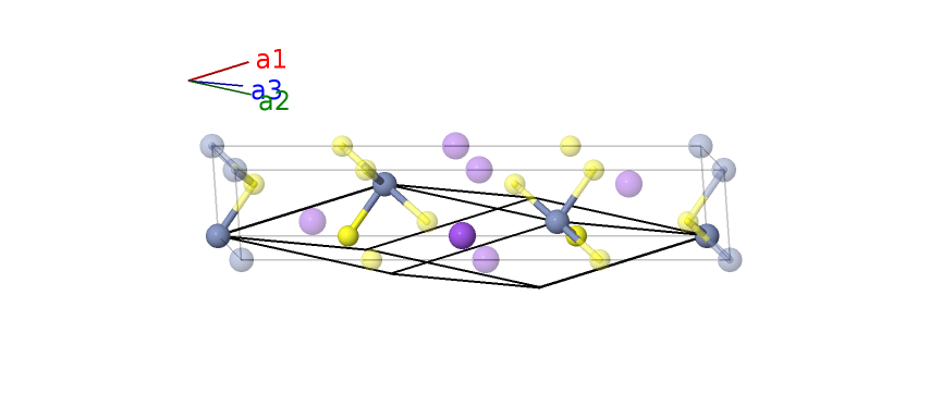 | $\mathbf{B_{2}}$ | = | $\frac{1}{2} \, \mathbf{a}_{1}+\frac{1}{2} \, \mathbf{a}_{2}+\frac{1}{2} \, \mathbf{a}_{3}$ | = | $\frac{1}{2}c \,\mathbf{\hat{z}}$ | (1b) | Na I |
