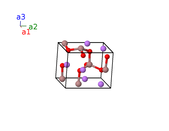 | $\mathbf{B_{8}}$ | = | $- \left(x_{2} - \frac{1}{2}\right) \, \mathbf{a}_{1}+\left(y_{2} + \frac{1}{2}\right) \, \mathbf{a}_{2}+\left(z_{2} + \frac{1}{2}\right) \, \mathbf{a}_{3}$ | = | $- a \left(x_{2} - \frac{1}{2}\right) \,\mathbf{\hat{x}}+b \left(y_{2} + \frac{1}{2}\right) \,\mathbf{\hat{y}}+c \left(z_{2} + \frac{1}{2}\right) \,\mathbf{\hat{z}}$ | (4a) | Li I |