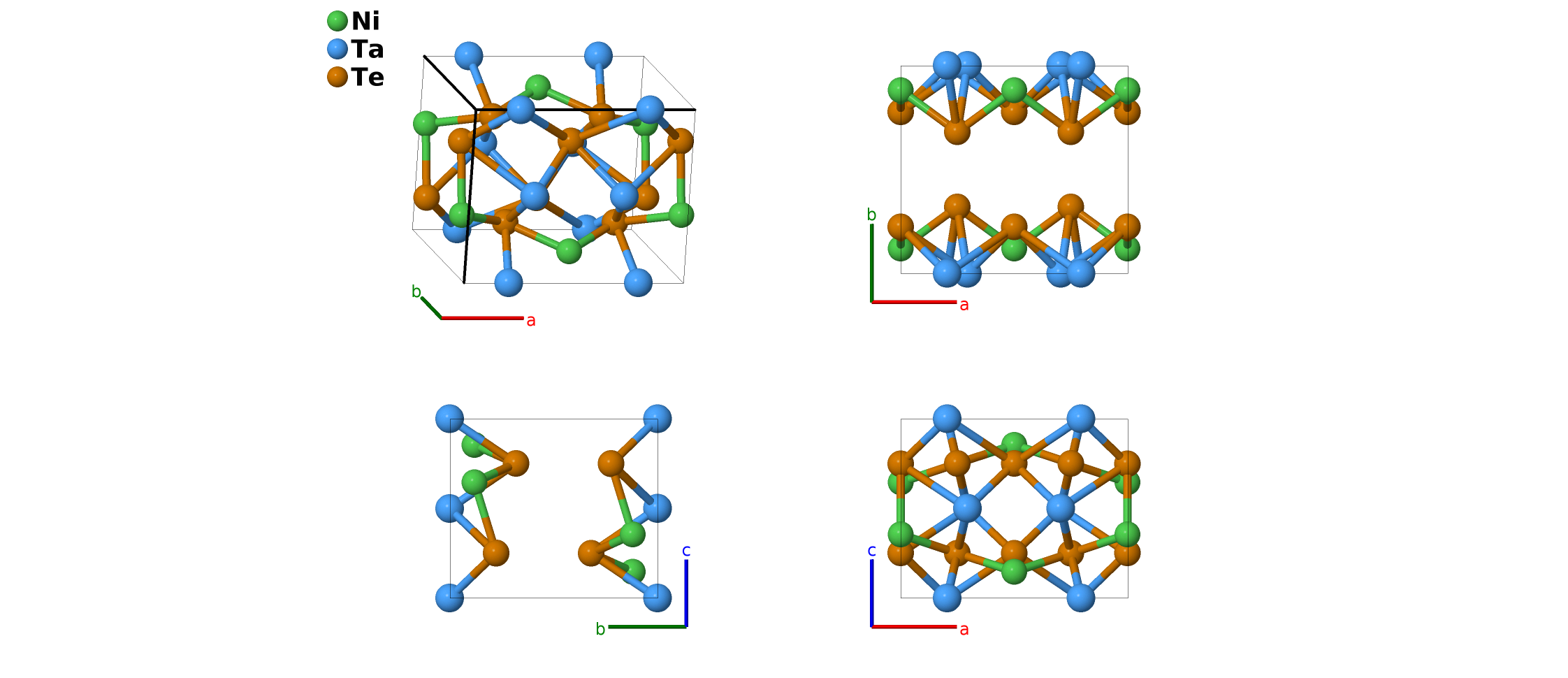 | $\mathbf{B_{14}}$ | = | $\frac{1}{2} \, \mathbf{a}_{1}- y_{4} \, \mathbf{a}_{2}+\left(z_{4} + \frac{1}{2}\right) \, \mathbf{a}_{3}$ | = | $\frac{1}{2}a \,\mathbf{\hat{x}}- b y_{4} \,\mathbf{\hat{y}}+c \left(z_{4} + \frac{1}{2}\right) \,\mathbf{\hat{z}}$ | (4h) | Te II |