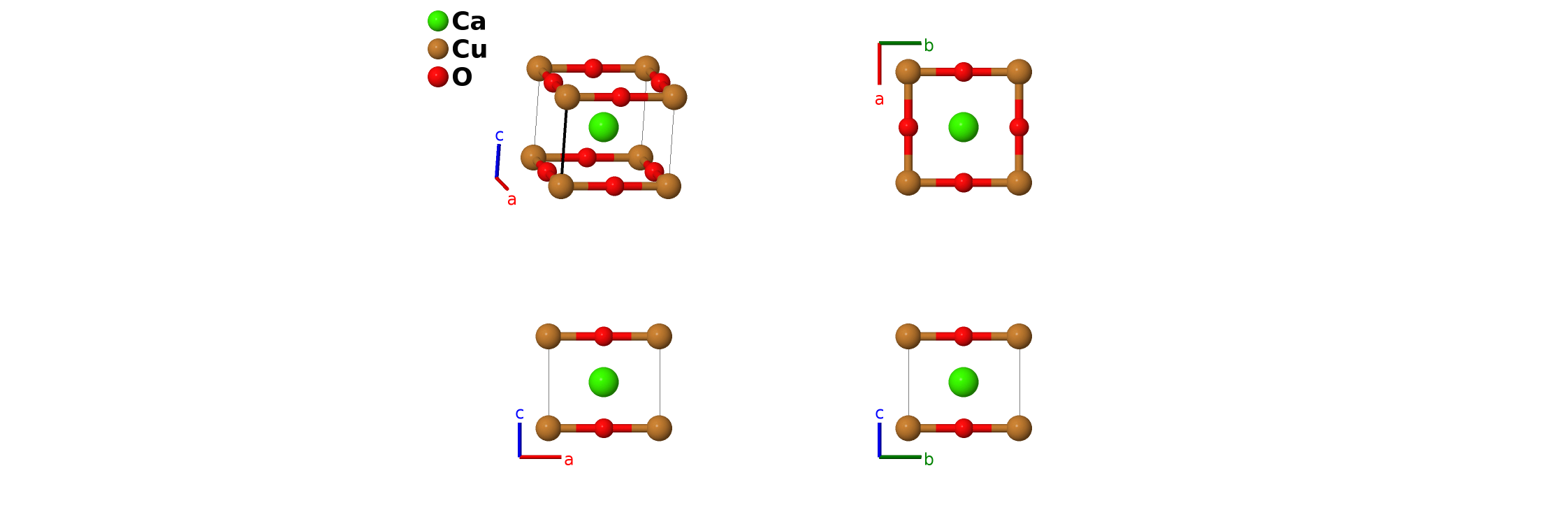 | $\mathbf{B_{2}}$ | = | $\frac{1}{2} \, \mathbf{a}_{1}+\frac{1}{2} \, \mathbf{a}_{2}+\frac{1}{2} \, \mathbf{a}_{3}$ | = | $\frac{1}{2}a \,\mathbf{\hat{x}}+\frac{1}{2}a \,\mathbf{\hat{y}}+\frac{1}{2}c \,\mathbf{\hat{z}}$ | (1d) | Cu I |